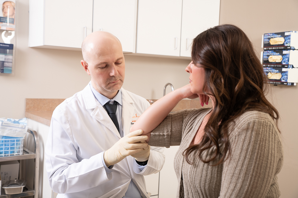 There are several different types of psoriasis, each with a few different features and symptoms. The providers at Clear Skin Dermatology assess your symptoms during a flare-up and may take a skin sample for a biopsy in order to diagnose you.